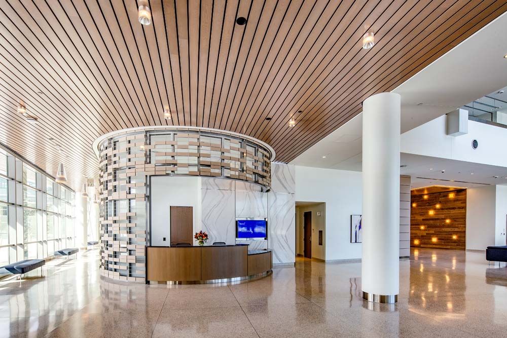 ALC was part of the construction team on the new Sentry Insurance Headquarters project in Stevens Point, WI.  ALC partnered with JH Findorff on the new project.  The building features many ceilings and soffits that die directly into the exterior window systems, creating severe natural light conditions.  ALC used Continental Drywall’s Rapid Deco to provide a superior level 5 finish on these areas while maintaining a very aggressive project schedule.